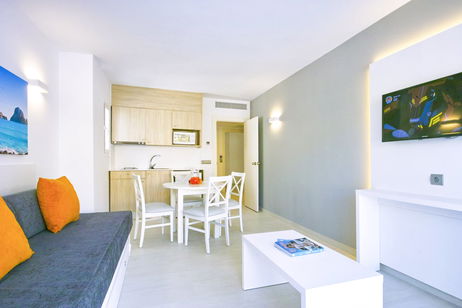 Los Apartamentos Familiares son perfectos para grupos grandes o familias con niños. Cuentan con dos habitaciones con cama de matrimonio o dos camas individuales y dos baños, uno de ellos en suite. Son apartamentos para un máximo de 6 personas.